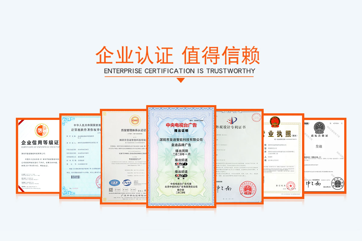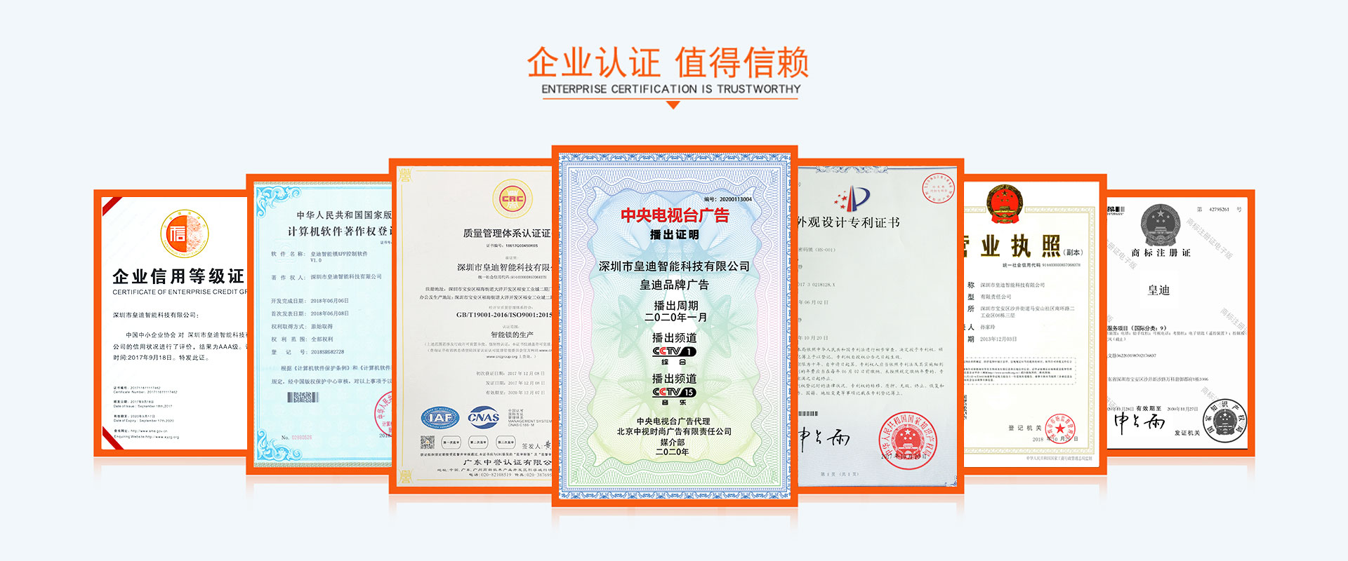 深圳市皇迪智能科技有限公司,是一家集產品研發(fā)、制造、銷售、安裝、售后于一體的全產業鏈公司,我司專注于酒店刷卡鎖、公寓藍牙密碼鎖、電子鎖、密碼鎖研發(fā),生產,銷售.是國家高新技術企業,公司已通過ISO9001/2015標準認證,并擁有多項國家實用新型專利、外觀專利及計算機軟件著作權; 皇迪玻璃門鎖廠家一直秉承“以顧客為中心,以人為本,長期艱苦奮斗”的經營理念,為全球每一位消費者提供舒適,便捷,安全的高品質生活。